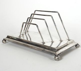 Manuf Wilhelm Binder/Schwäbisch Gmünd, rechteckige Plinthe auf vier Kugelfüßen, 4 2fach gekantete Streben, MZ, Beschau, Verkäufermarke Tähne, ca 190gr 800er Silber, 9,5 x 20 x 10,5 cm