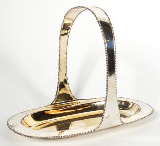 Manuf Gebrüder Deyhle/Schwäbisch Gmünd, ovale Grundform, breiter Henkel, umlaufend Perlrand, 15,5 x 21 x 12,5 cm, MZ, Beschau, ca 220gr 800er Silber, anlaufgeschützt