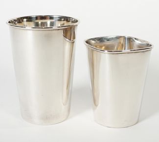 Konvolut von 2, je Manuf Guido Zipoli di Alberto Ricci/Florenz, je glatte konische Wandung und Bördelrand, 1x in Quadrat übergehend, H 10 und 8 cm, je MZ, Beschau, zus ca 155gr 800er Silber
