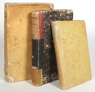 Konvolut von 3, 18. & 20. Jh., bestehend aus: Büsching, Anton Friedrich: Beyträge zu der Lebensgeschichte denkwürdiger Personen, insonderheit gelehrter Männer. 5. Theil, Halle 1788, Friedrich II., Preußen: Hinterlassene Werke Friedrichs II Königs von Preussen. Dritter Band, Berlin 1788 und Schüddekopf, Karl: August Siegfried von Goue, Weimar 1917, 2x Pappeinband, 1x broschiert (besch), tlw Eigentümernachweis, gebräunt/fleckig/stockfleckig, je altersbedingte Lagerungs- und Gebrauchsspuren (ex-Coll Crusius/Bremen)