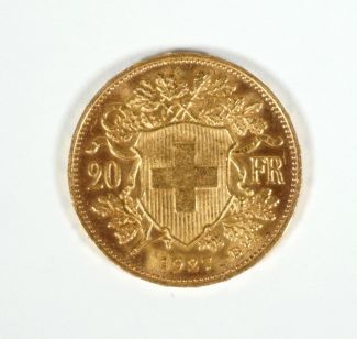 „Vreneli“, 20 SFR, 1927, ca 6,42gr 900er GG