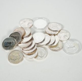 22x 5$, Anlagemünzen Silber, unterschiedliche Motive, u.a. Wildtiere, Olympia, aus 2008-2018, zus. 22 Unzen 999er-Silber