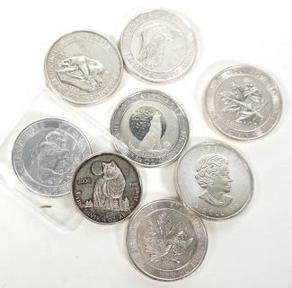 5x 8$, 2x 2$, 1x 1$, Anlagemünzen Silber, aus 2006-2017, zus. 9 1/4 Unzen 999er-Silber