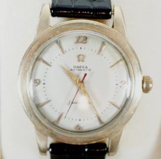 Herst. Omega/Biel, Seamaster Automatic, 1940er/50er-Jahre, 14k vergoldetes Gehäuse, silbernes Zifferblatt, Strich- u arabische Indices, MZ, ca. 4,3 x 3,8 cm, Werk läuft an, späteres Lederarmband