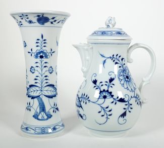 Staatl. Porzellan-Manufaktur Meissen, Zwiebelmuster blau, blaue Schwertermarke unter Glasur, Vase mit 2 Schleifstrichen, H ca. 25,5 cm, Kannenknauf min. min. best.