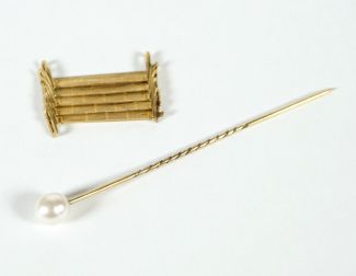 bestehend aus: Krawattennadel mit Perle L. 7 cm und Bandelement, zus ca 4,41gr 585er Gold (je getestet) total